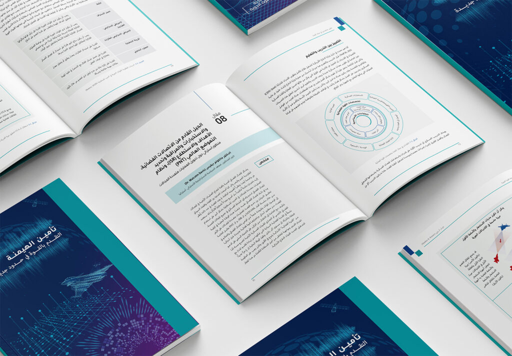 This Arabic technical journal (2025 edition) was professionally designed for presentation at a prestigious annual Airspace Technology conference attended by global aviation leaders. The layout, developed in Adobe InDesign, features precise Arabic typography and a clean, research-focused structure. All technical infographics were custom-created in Adobe Illustrator, ensuring clear, high-impact visual communication throughout.